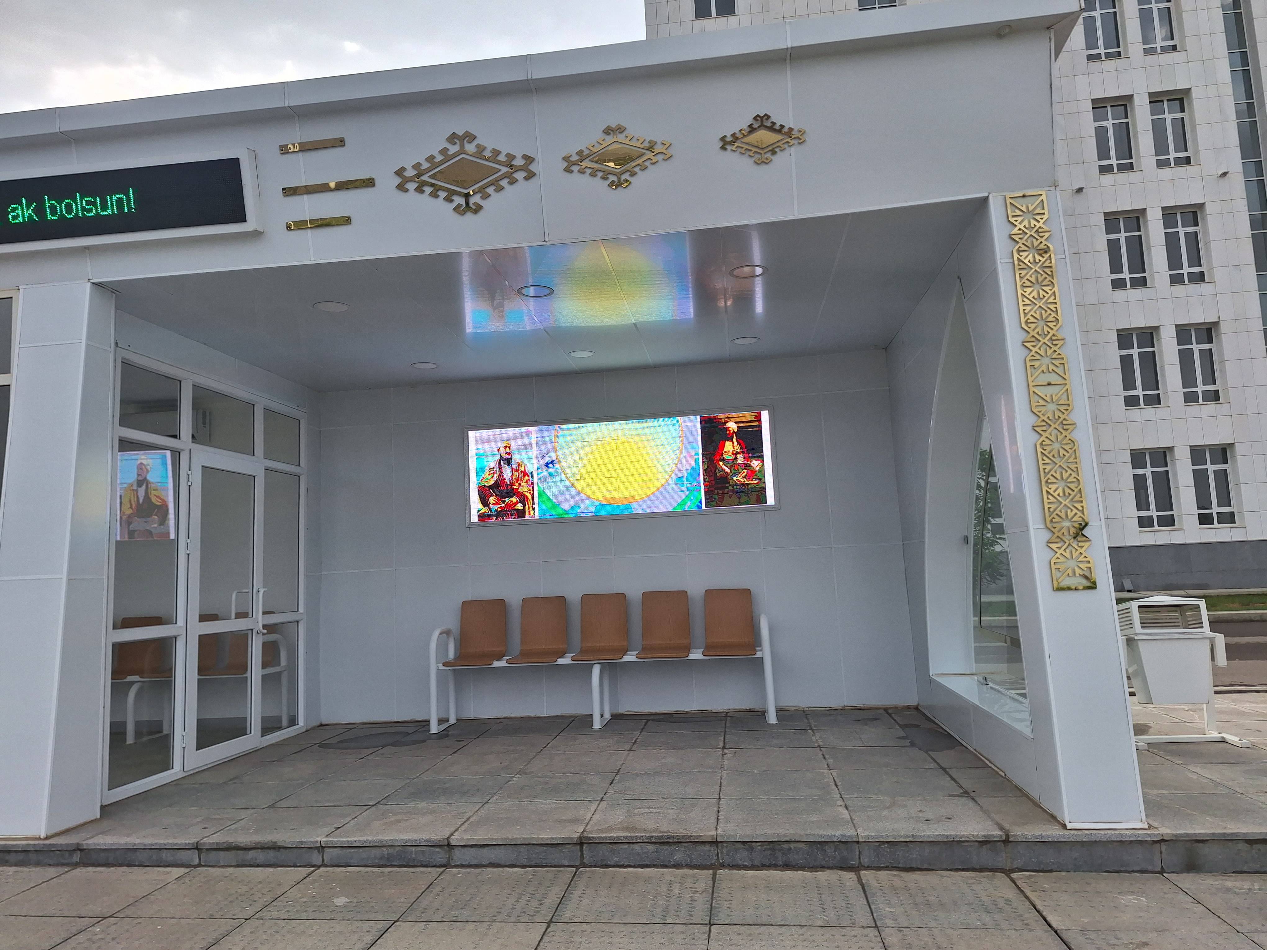 Amatly çözgüt реализовала проект по оснащению автобусных остановок в городе Аркадаг современными LED-экранами, предназначенными для отображения расписания маршрутов, городской информации и рекламных материалов.